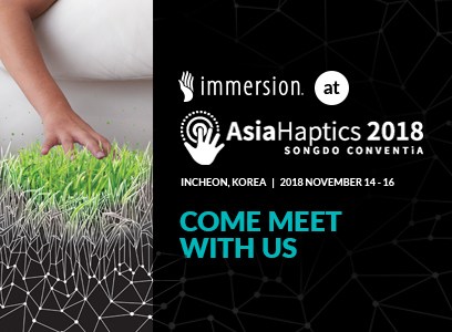 Songdo, South Korea – Immersion is sponsoring this year’s biennial AsiaHaptics with representatives attending the show during November 16 – 17, 2018.