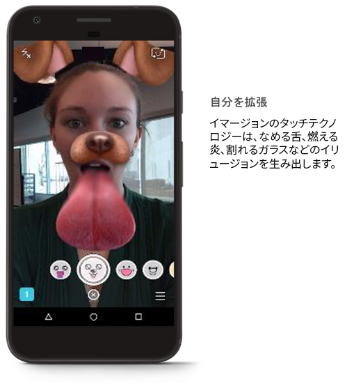 ユーザーは、触感付きのステッカーや絵文字を送り合ったり、絵を描くときに感じる触感を楽しんだりしています。触感は、メッセージやSNS上のやり取りを、ユニークで生き生きとしたものにします。しかし、AR カメラ エフェクトに触感を加えると、ユーザー エンゲージメントの可能性をさらに高め、ユーザーが画像を使って遊べるようになります。濡れた舌で画面をなめたり、炎で友達の携帯電話をカリカリになるまで焼いたりする感触を感じてもらうこともできます。触感効果はエンゲージメントを高めることが示されており、デベロッパーがクリエイティブに新しい体験をデザインすることができます。